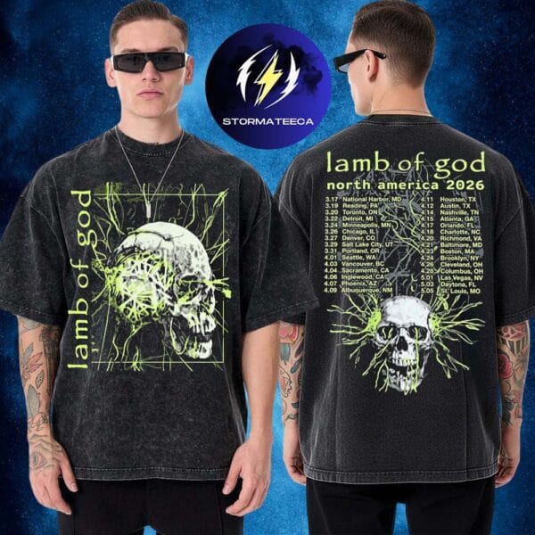 Lamb Of God Merch North America Tour 2026 Electric Skull Tour Dates Two Sided Washed T-Shirt
