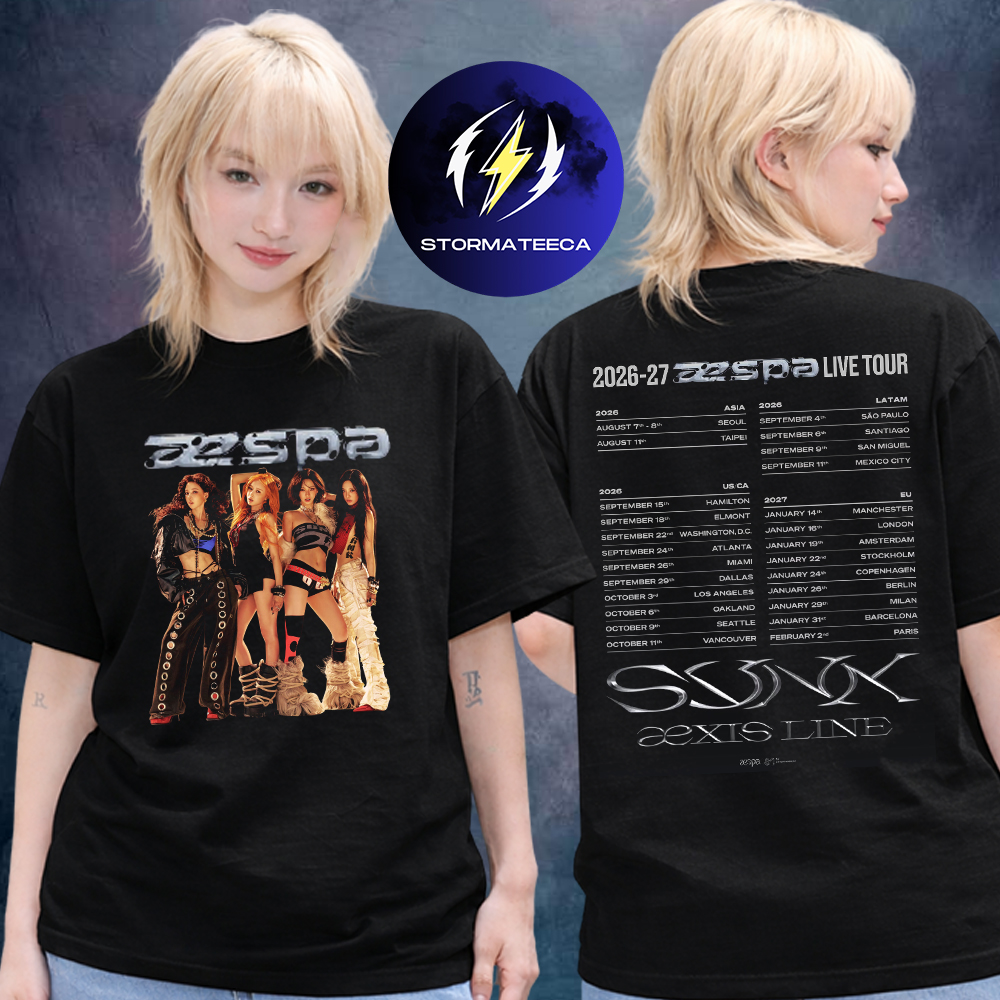 Step into the era of aespa’s global dominance with this bold aespa tour shirt, inspired by their 2026–2027 live tour across Asia, the US, and Europe. Designed for fans who live and breathe K-pop culture, this two-sided tee captures both the visual power of the group and the unforgettable journey of their tour. With striking front artwork and detailed tour dates on the back, it’s more than just merch—it’s a wearable memory of a defining moment in aespa’s evolution.