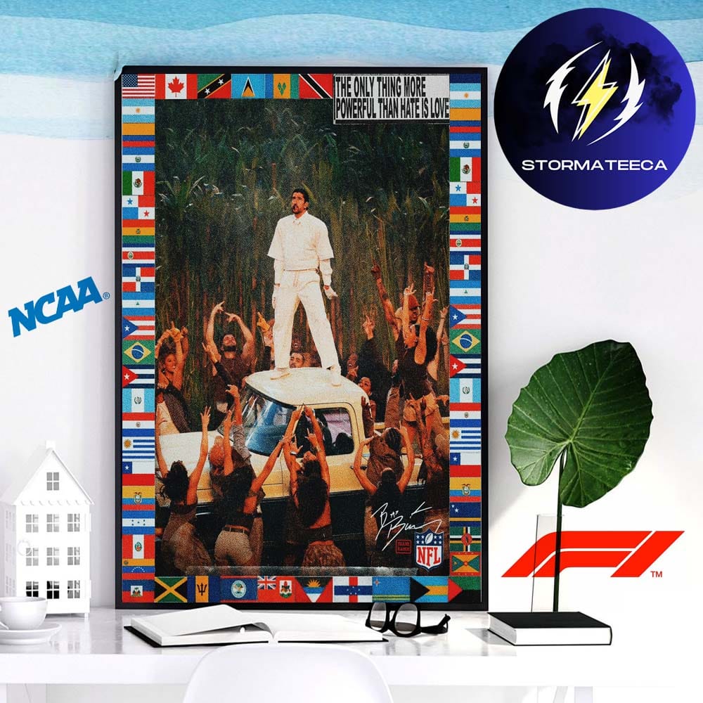 👉 Shop the Bad Bunny All American Flag The Only Thing More Powerful Than Hate Is Love Home Decor Poster Canvas at Stormateeca today.