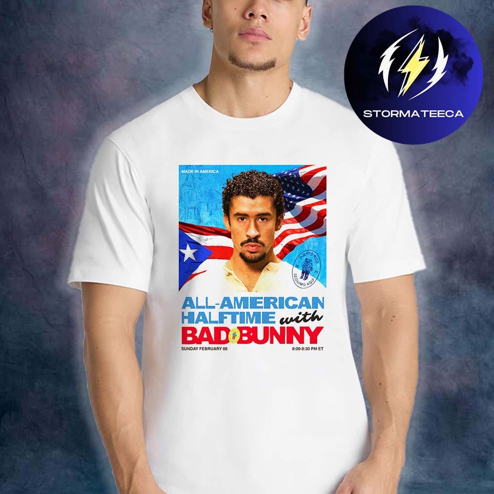 👉 Shop the Bad Bunny All American Halftime Show Sunday February 8 2026 Unisex T-Shirt at Stormateeca today.