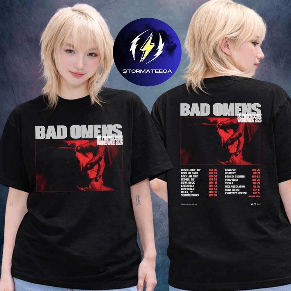 Dark, emotional, and unapologetically bold—the Bad Omens 2026 Tour T-Shirt captures the raw intensity of a band at its peak. Inspired by the “Do You Feel Love” worldwide run, this piece blends haunting visuals with the full tour schedule, turning a simple tee into a wearable memory of a global movement. The deep red tones and stark imagery echo the band’s signature aesthetic, while the two-sided design brings fans closer to the experience. Whether you’ve followed every stop or just connected with the music, this shirt keeps that energy alive.