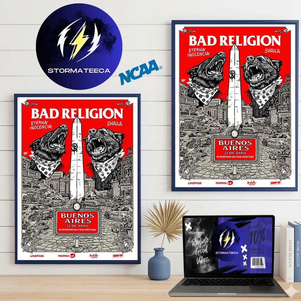 Bad Religion Buenos Aires Show Poster At Microstage Malvinas Argentinas On April 22 2026 Home Decor Poster Canvas