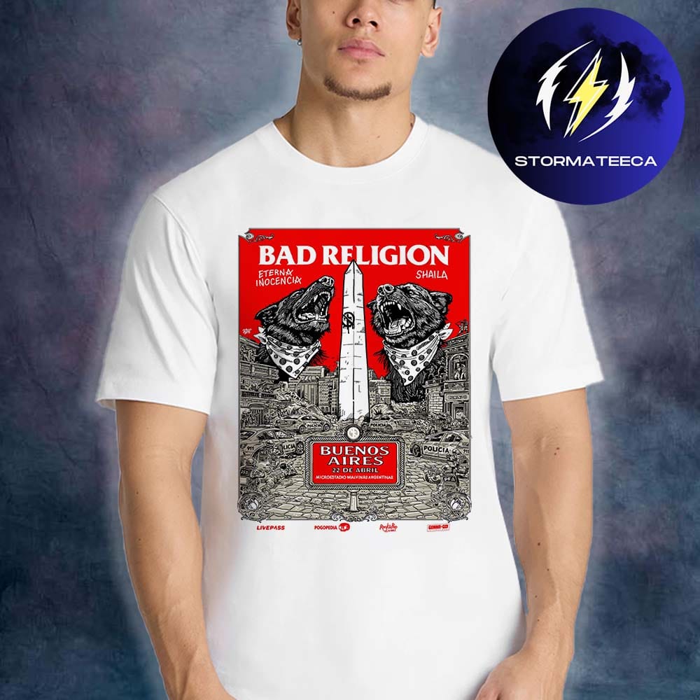 The Bad Religion Buenos Aires 2026 T-Shirt captures the raw energy of the band’s unforgettable April 22 performance at Microstage Malvinas Argentinas. Inspired by the official show poster, this design reflects the rebellious spirit and politically charged identity that have defined Bad Religion for decades. For fans who understand punk as more than music—but as movement, message, and mindset—this shirt represents a moment in time. It’s not just tour merch; it’s wearable history from a legendary night in Buenos Aires.