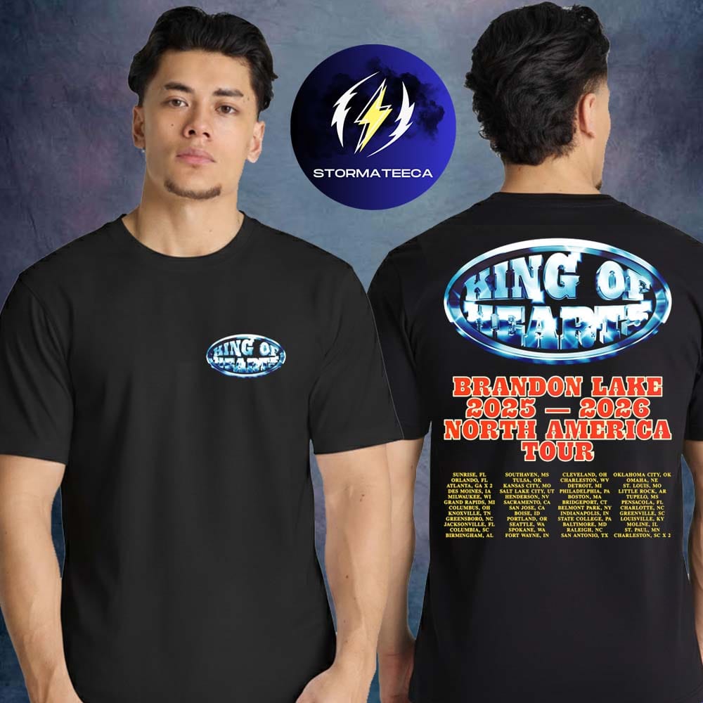 Mark the energy of a powerful live experience with the Brandon Lake tour dates tee, inspired by the King of Hearts Tour 2026. This piece captures the spirit of the tour through bold visuals and a design that feels both modern and timeless. With a clean front logo and a detailed back print featuring official tour stops, it connects fans to the journey across North America. Whether you stood in the crowd or followed the movement from afar, this tee brings that moment into your everyday style.