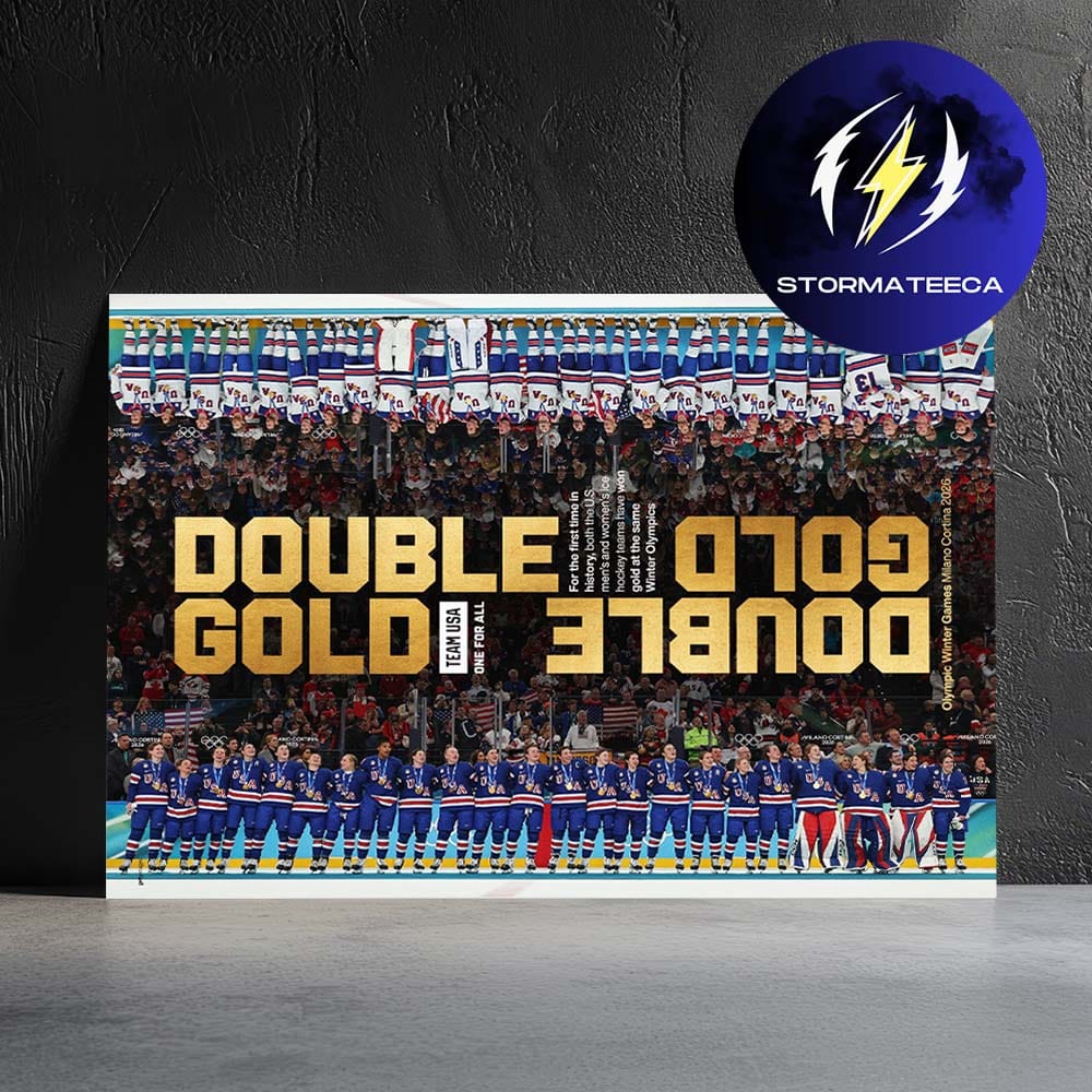 Celebrates Usa Hockey Team Double Gold For The First Time In History Home Decor Poster Canvas