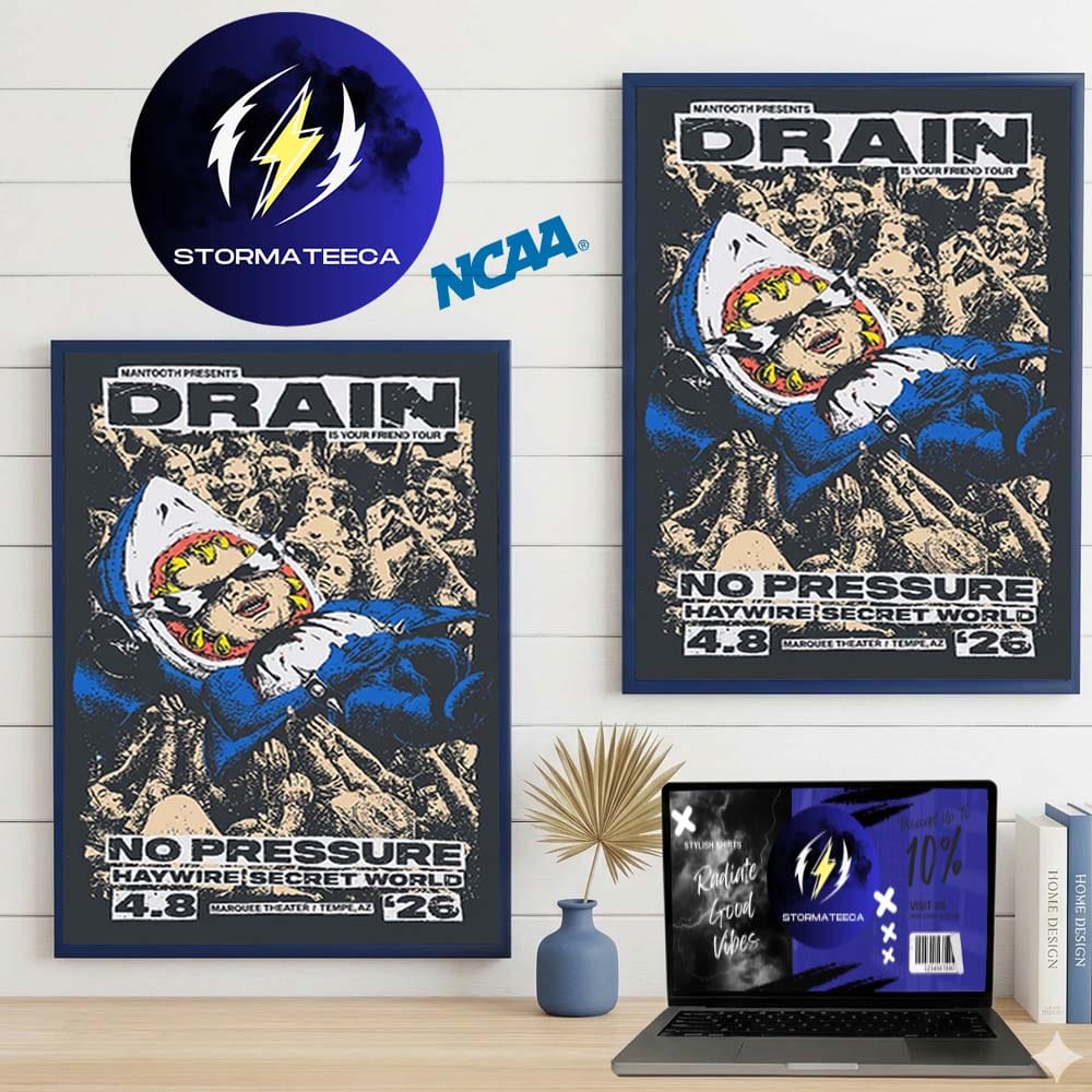 The Drain Tour 2026 Temple AZ poster captures the raw, chaotic energy of one of the most anticipated hardcore shows of the year. Featuring a stacked lineup with No Pressure, Haywire, and Secret World, this piece reflects the intensity of live music culture at its peak. Designed with gritty, high-impact visuals, it feels like something pulled straight from the walls of a packed venue. Whether you were there in the crowd or just connect with the scene, the Drain Tour 2026 Temple AZ poster is a bold way to hold onto that moment.