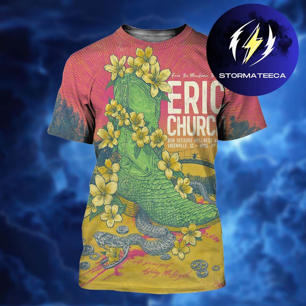 Eric Church Free The Machine Tour 2026 At Bon Secours Wellness Arena In Greenville SC On Apirl 3 2026 All Over Print Shirt Features: