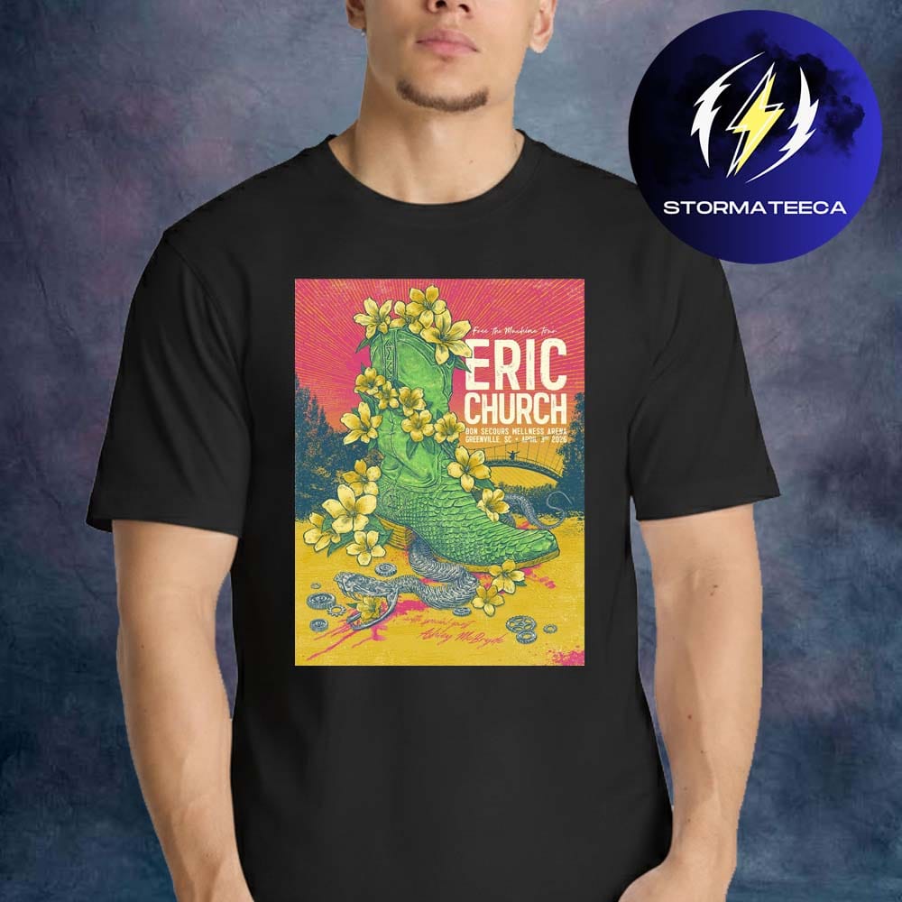 Eric Church Free The Machine Tour 2026 At Bon Secours Wellness Arena In Greenville SC On Apirl 3 2026 Unisex T-Shirt Features: