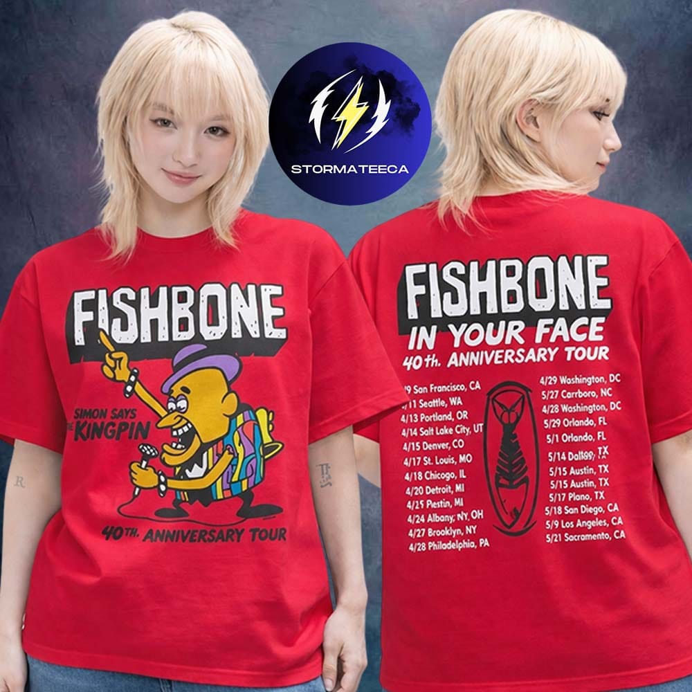 Celebrate four decades of fearless sound and genre-defying energy with this standout piece from Fishbone. The Fishbone 40th Anniversary tour shirt captures the spirit of the “In Your Face” 2026 tour—loud, unapologetic, and rooted in a legacy that blends ska, punk, funk, and soul. Known for their explosive performances and cultural impact, Fishbone continues to push boundaries, and this tee reflects that same bold attitude. Whether you’ve been a fan since the early days or just discovered their sound, this shirt lets you wear that connection with pride.
