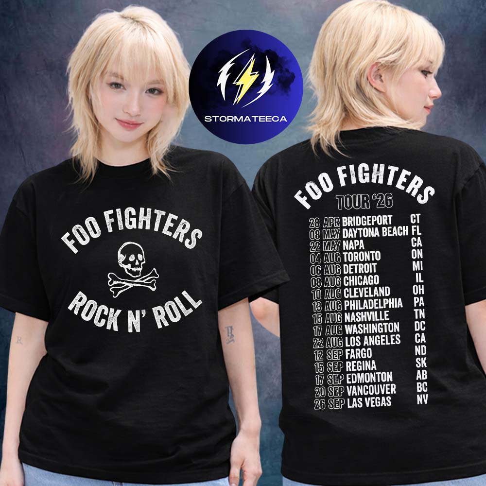 This shirt stands out with its bold two-sided design. The front features a striking rock-inspired graphic with a skull motif that immediately channels that classic Foo Fighters edge. Flip it around, and the back tells the full story—tour dates printed in a clean, structured layout that feels authentic to real concert merch.