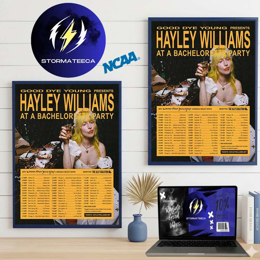 The Hayley Williams Tour 2026 Poster captures the essence of her Good Dye Young Presents era in a format that goes beyond merch—it becomes part of your space. Inspired by the Bachelorette Party Tour 2026, this design blends bold typography, intimate photography, and a full tour schedule into one cohesive visual. It feels like a snapshot of a moment in music history, where style, emotion, and performance collide. Whether you followed the tour closely or simply connect with her artistic evolution, this Hayley Williams Tour 2026 Poster brings that energy into your everyday environment.