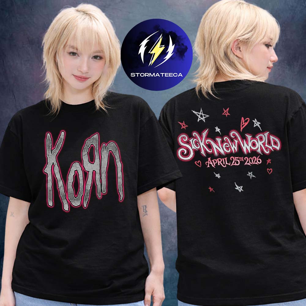 Korn Sick New World 2026 Merch Logo Hearts Star Two Sided Unisex T-Shirt
