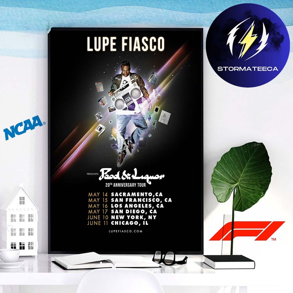 👉 Shop the Lupe Fiasco Food And Liquor 20th Anniversary Tour Schedule Home Decor Poster Canvas at Stormateeca today.