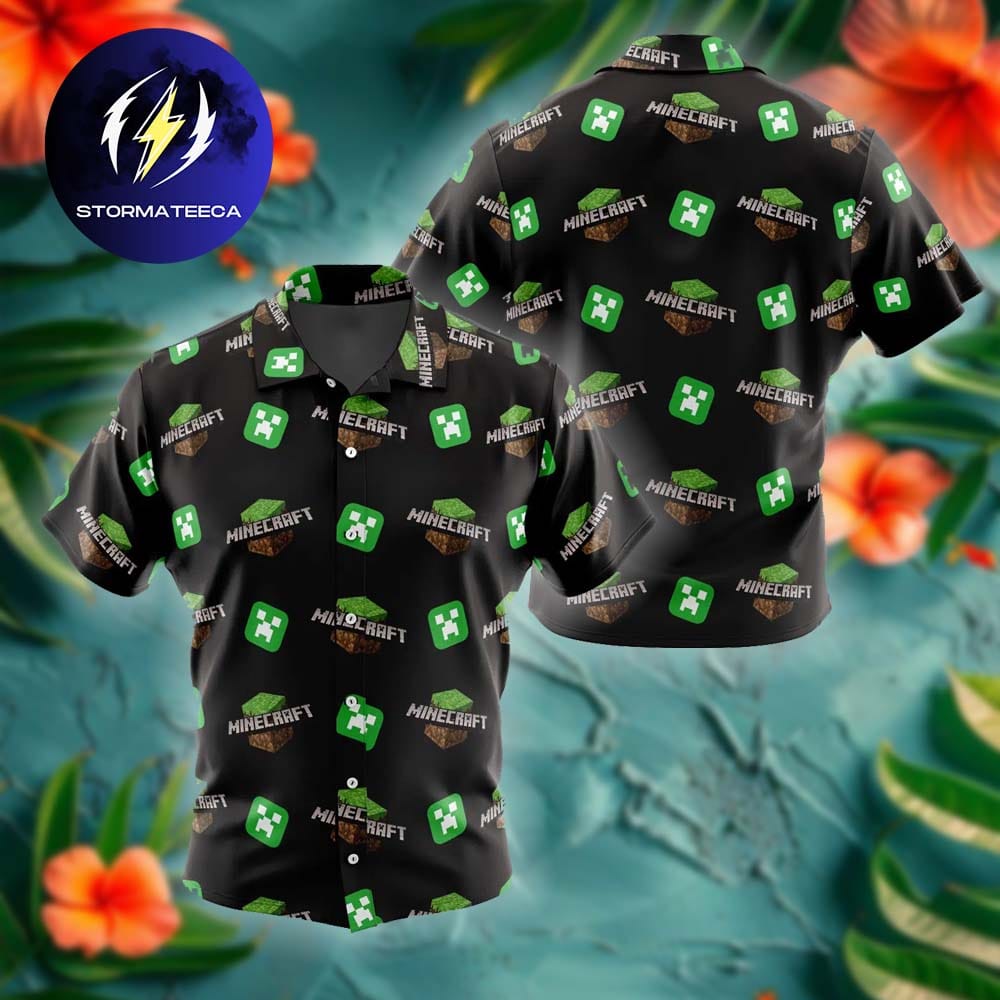 Minecraft Power Button Up Summer Hawaiian Shirt