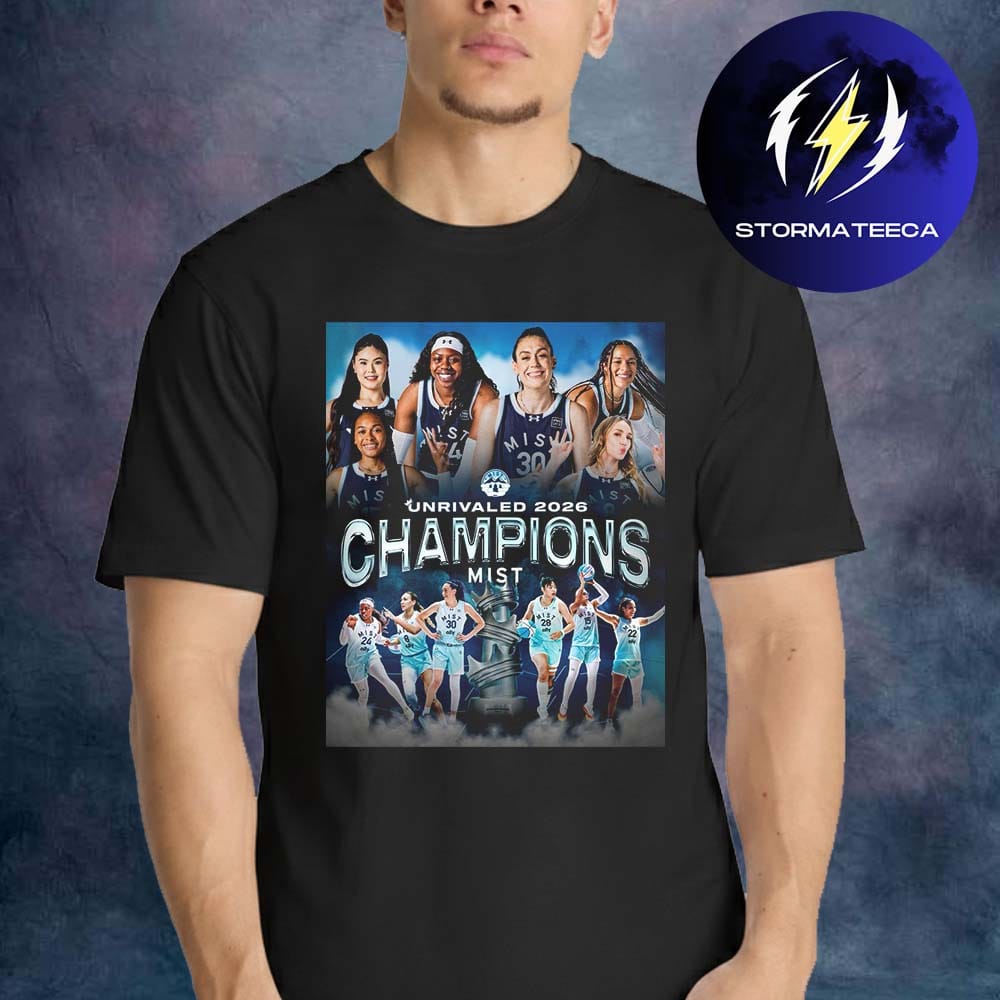 The Mist BC 2026 Champions T-Shirt celebrates one of the most unforgettable moments in modern basketball culture. Designed to honor the team’s incredible run to the 2026 Unrivaled Championship, this fan shirt captures the excitement, pride, and unity that defined the season. Featuring dynamic artwork of the players alongside bold championship typography, the design reflects the energy that made Mist BC champions. Whether you followed every game or simply admire the legacy of this championship squad, this shirt lets fans represent a historic victory while staying connected to the spirit of the team.
