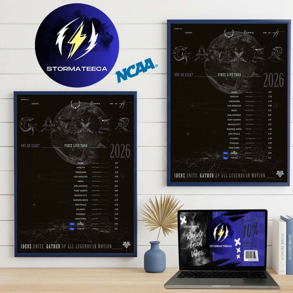 Mark the beginning of a new era with this One Or Eight Gather tour 2026 poster, a visual tribute to the group’s first live tour. Designed with a dark, atmospheric aesthetic, this piece captures the ambition, mystery, and global reach behind their debut journey. Featuring a detailed tour schedule and a cosmic-inspired graphic, it transforms a simple wall into a statement of identity and movement. Whether you followed every stop or connected with the music from afar, this artwork preserves the energy of a moment where everything started to take shape.