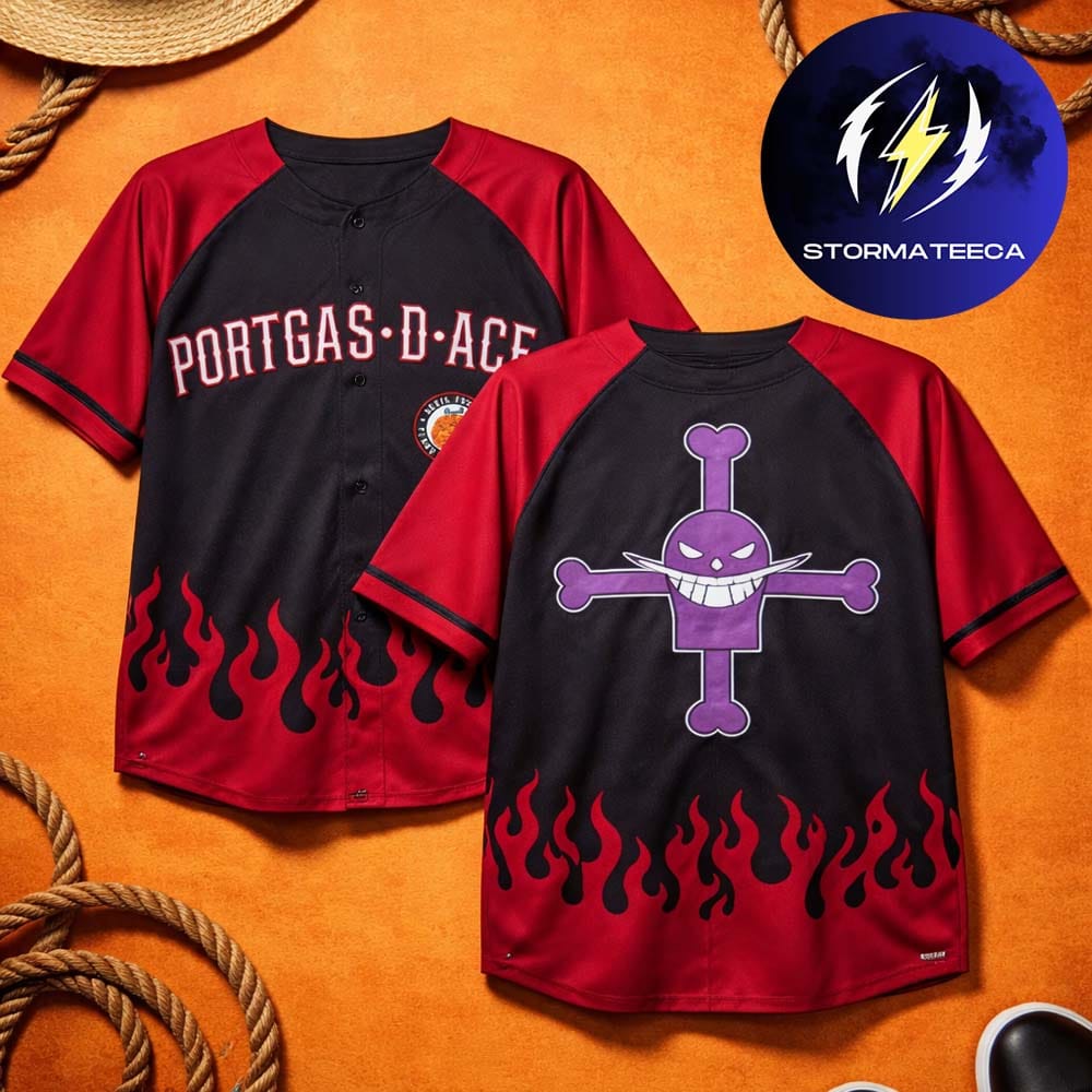 The One Piece Ace Baseball Jersey captures the fiery spirit and unforgettable legacy of Portgas D. Ace, one of the most beloved characters in the One Piece universe. Inspired by Ace’s bold personality and iconic pirate symbol, this jersey blends anime culture with modern streetwear style. The dramatic red-and-black flame design, paired with Ace-themed graphics, creates a look that instantly stands out. Whether you’re a longtime fan of the series or simply love anime-inspired fashion, this jersey brings the energy of the Grand Line into everyday wear.