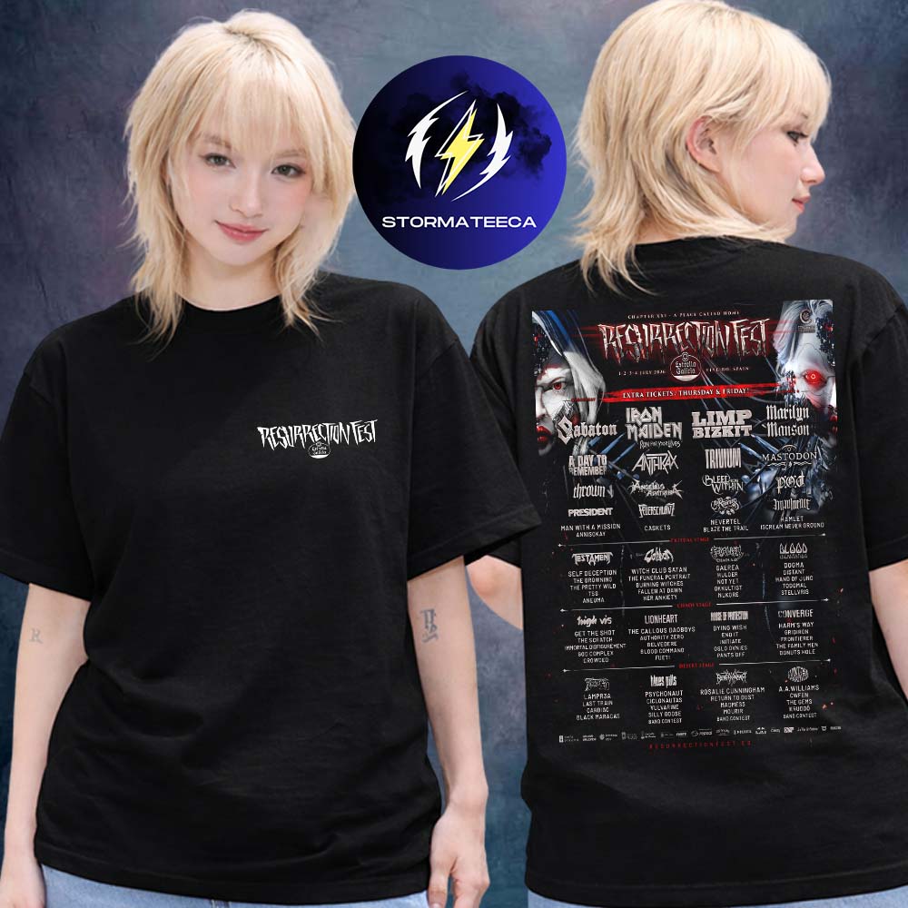 Resurrection Fest EG Tour 2026 At Plaza Fuente Nueva In Viveiro Lugo Spain On July 1-4 2026 Full Line Up Two Sided Unisex T-Shirt