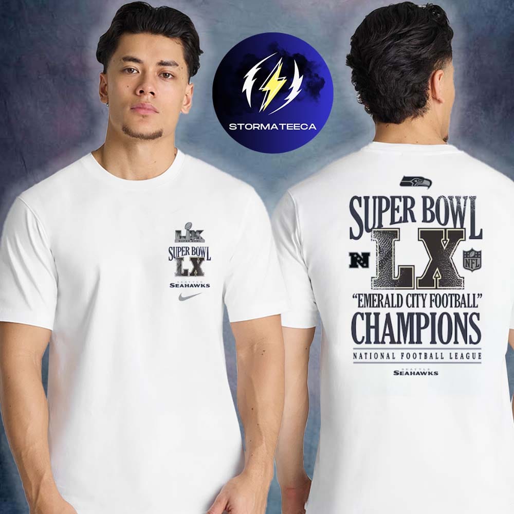 Celebrate championship greatness with clean, bold streetwear energy in the Seahawks Super Bowl LX Champions White T-Shirt. Inspired by the electrifying long ball moments that helped define Seattle’s title run, this design captures the thrill of game-changing plays on football’s biggest stage. The crisp white base amplifies the victory graphics, turning a historic Super Bowl triumph into wearable fan pride. Whether you’re reliving the highlights or representing the 12s daily, this tee delivers championship spirit in standout style.
