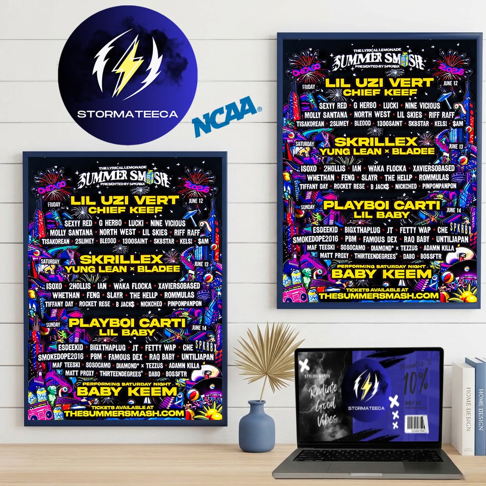 Step into the energy of one of the most iconic hip-hop festivals with this Summer Smash 2026 poster, capturing the raw intensity and culture of Chicago’s biggest music weekend. Packed with a stacked lineup and bold visual elements, this design reflects the pulse of live music, streetwear, and festival freedom. From headliners to underground legends, every detail channels the atmosphere of June 12, 2026. Whether you were there or wish you were, this piece brings the sound, color, and chaos of Summer Smash straight to your walls.