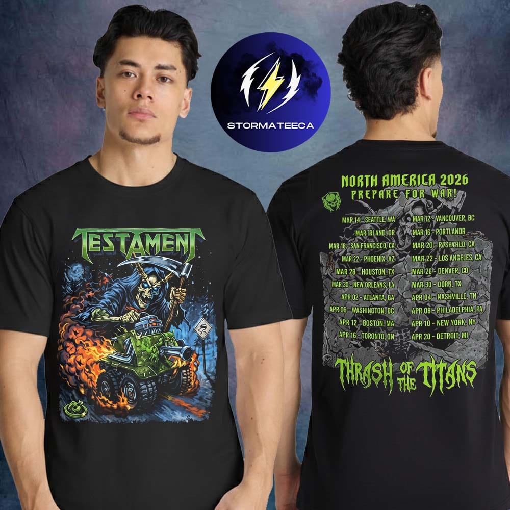 Testament Thrash Of The Titans North America Tour 2026 Pop Up Merch Prepare For War Two Sided Unisex T-Shirt