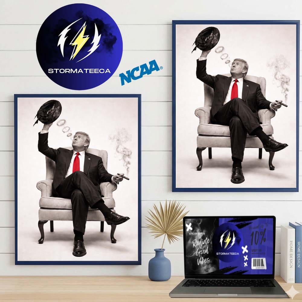 The Thank You Trump Armchair Cigar Poster captures a dramatic, gallery-style portrait with timeless black-and-white contrast and a bold red accent. Styled like a modern political art print, this piece blends classic photography with statement decor energy. The composed pose, rising smoke, and confident expression create a powerful visual narrative that commands attention. Whether displayed in a home office, studio, or collector space, this artwork transforms a wall into a conversation piece rooted in symbolism and presence.
