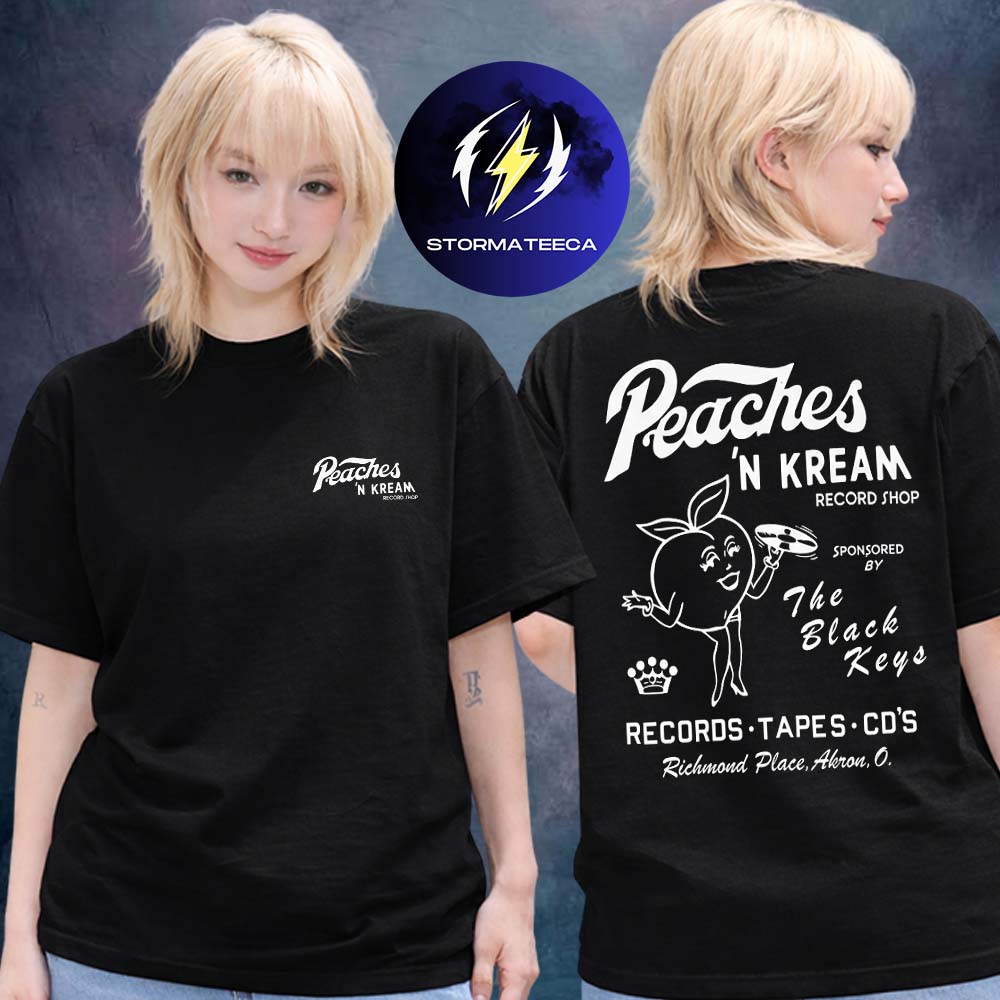 The Black Keys Merch Peaches N Kream World Tour 2026 Peach Record Two Sided Unisex T-Shirt