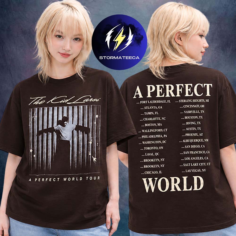 There’s a certain feeling that comes with following an artist across cities, stages, and moments—and The Kid Laroi captured that energy perfectly in the A Perfect World Tour 2026. This Kid Laroi tour dates T-shirt brings that journey to life, featuring a design that reflects not just the music, but the movement behind it. Every city listed, every detail printed, feels like part of a shared experience between artist and fans. Whether you were there or wish you were, this piece connects you directly to the tour’s story.