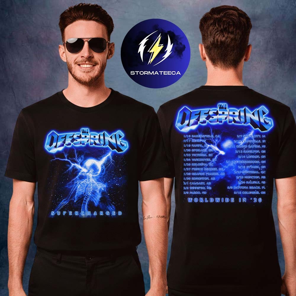 👉 Shop the The Offspring Merch Supercharged Worldwide Tour In '26 Supercharged Skeleton Two Sided Unisex T-Shirt at Stormateeca today.