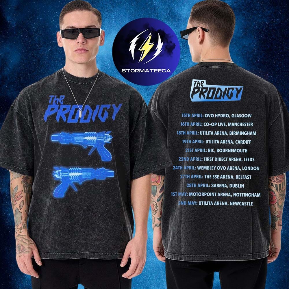 👉 Shop the The Prodigy Merch UK And Ireland Tour 2026 Raygun Two Sided Washed T-Shirt at Stormateeca today.