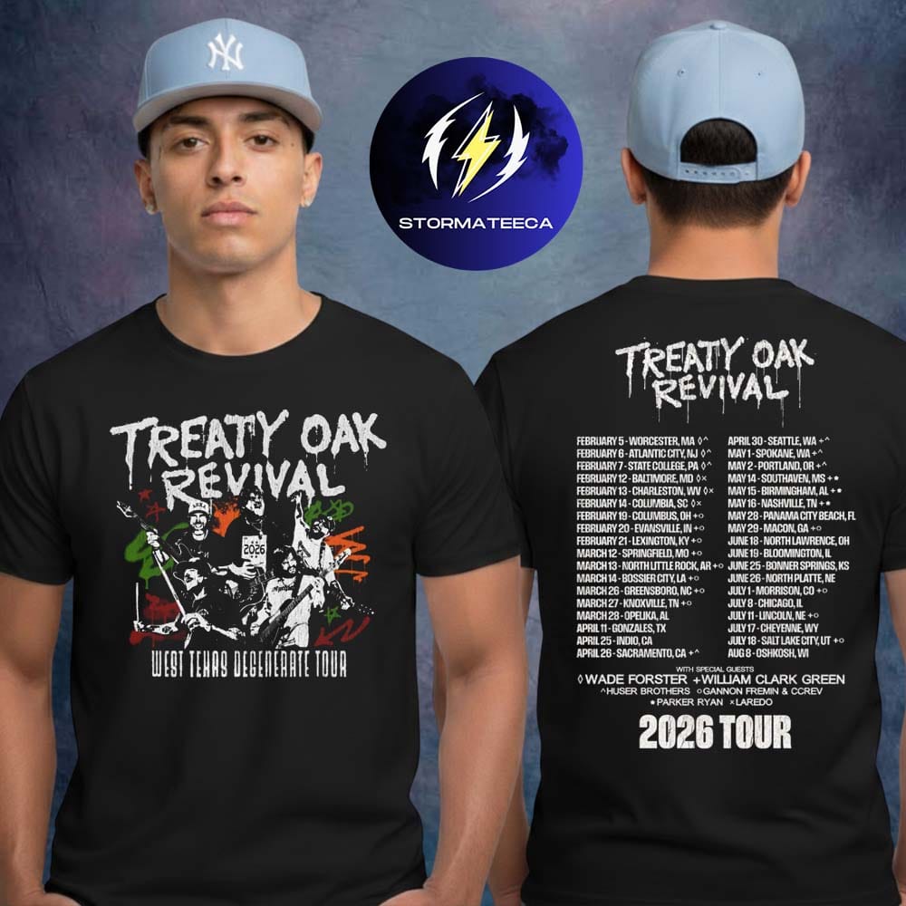 Capture the raw spirit of Southern rock on the road with the Treaty Oak Revival 2026 Tour Two Sided T-Shirt. Inspired by the band’s West Texas Degenerate tour era, this piece channels dusty highways, late-night sets, and the unapologetic energy of Red Dirt country. Treaty Oak Revival’s music blends grit, storytelling, and rebellion—and this tee transforms that atmosphere into wearable culture. Featuring coordinated front and back graphics, it’s built for fans who live the lifestyle as much as they love the sound.