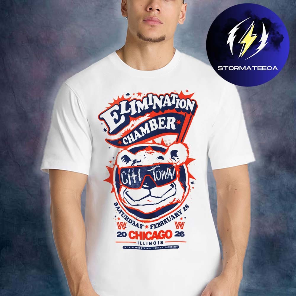 The Elimination Chamber Bear Glasses T-Shirt blends WWE event energy with unmistakable Chicago attitude. Inspired by the Pop Up Superstore collection, this design features a bold bear graphic rocking statement sunglasses, fusing city pride with wrestling spectacle. It’s playful, fearless, and built for fans who love their merch with personality. Whether you were part of the Elimination Chamber weekend or just want to rep Chicago in standout style, this shirt delivers a fresh take on event culture.