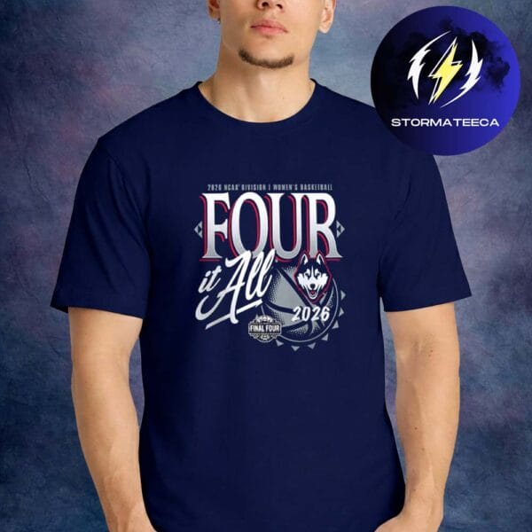UConn Huskies 2026 NCAA Men’s Basketball Tournament March Madness Final Four Navy Logo Two Sided Unisex T-Shirt
